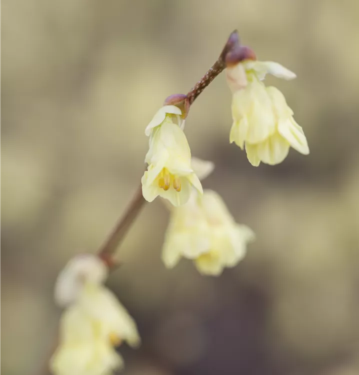 Die hellgelben, glockenförmigen Blüten erscheinen von März bis April.