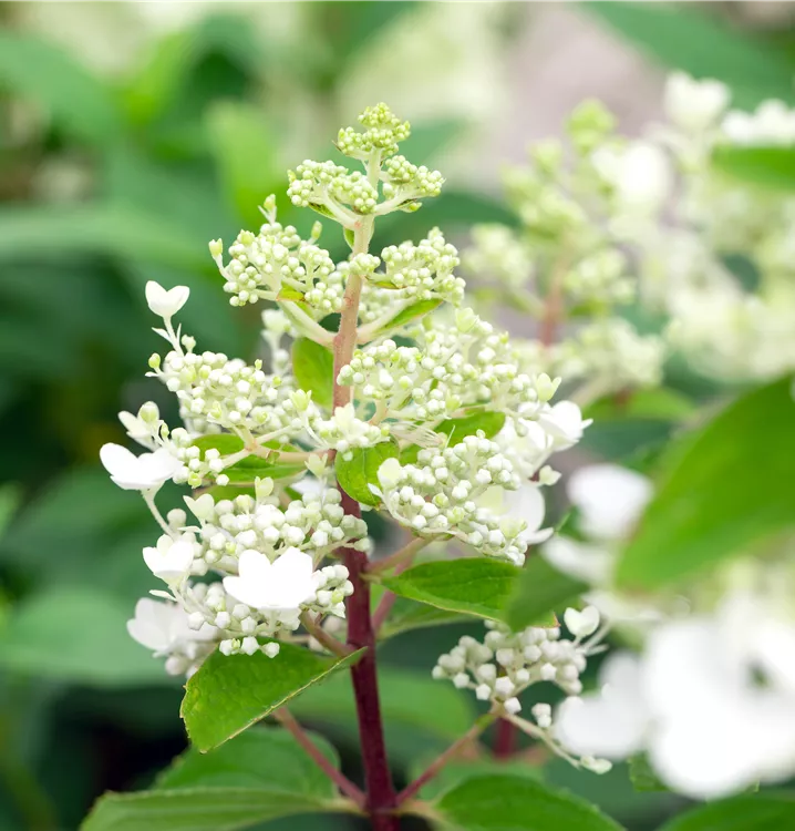 Die cremeweißen Blüten der Rispenhortensie 'Baby Lace' erscheinen in Rispen von Juli bis September. Diese sind angenehm duftend.