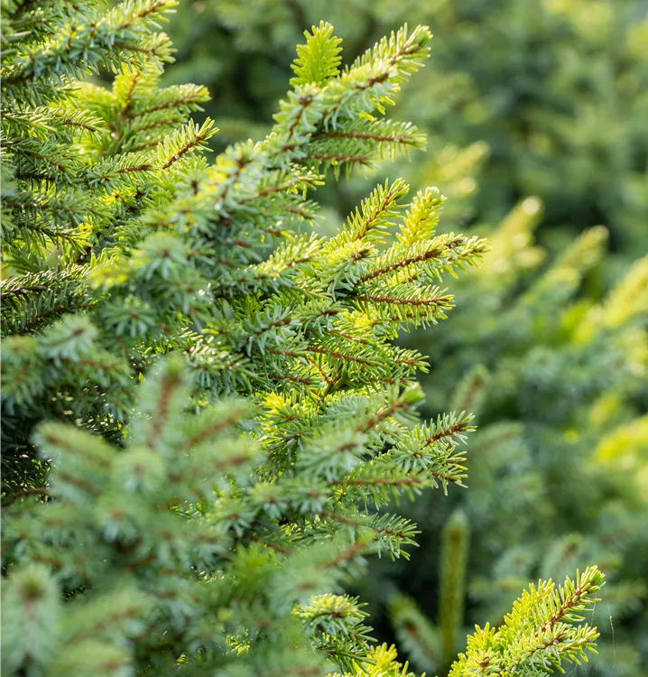 Ihre nadelförmigen Blätter haben eine silberblaue Färbung. Dekorative hellbraune Zapfen zieren Picea pungens 'Glauca Globosa' ab September. Dieses Gehölz ist gut frostverträglich.Sie bevorzugt durchlässigen Boden in sonniger Lage.