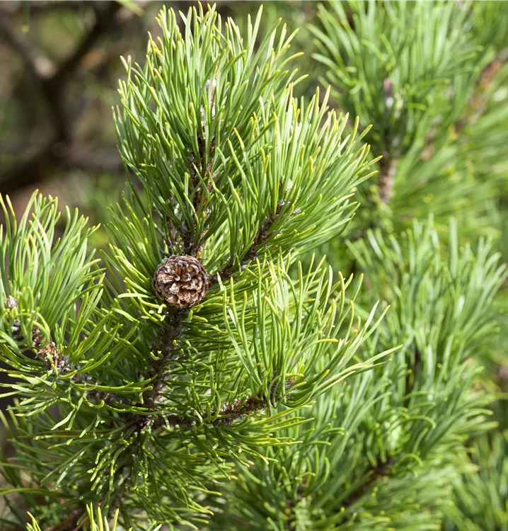 Ihre nadelförmigen Blätter haben eine mittelgrüne Färbung. Sie verwandeln sich im Winter in ein schönes Goldgelb. Dekorative braun-gelbe Zapfen zieren Pinus mugo 'Carsten´s Wintergold' ab Oktober. Dieses Gehölz ist gut frostverträglich. Sie bevorzugt einen sonnigen bis halbschattigen Standort. An den Boden stellt die Berg-Kiefer 'Carsten's Wintergold' keine besonderen Ansprüche.