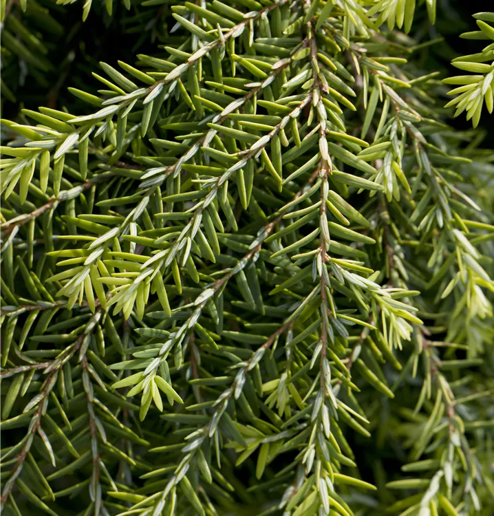 Die Kissen-Hemlockstanne 'Jeddeloh' ist immergrün. Ihre Nadeln sind dunkelgrün, glänzend.