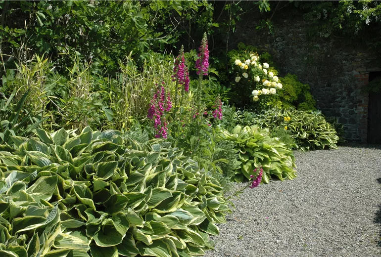 Staudenbeet mit Rittersporn und Fingerhut
