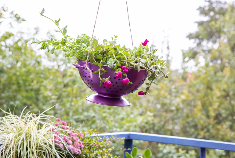 Mit Pflanzen kann man die schönsten DIY Ideen für den Balkon realisieren. Denn man muss nicht immer neue Dinge kaufen, um den eigenen Balkon schön zu gestalten. Wenn man ein altes Nudelsieb übrighat, kann man daraus eine stylische Blumenampel machen. Wie das geht? Je nach Geschmack kann man das Sieb direkt bepflanzen oder es vorher in der Lieblingsfarbe anmalen oder ansprühen. Aufhängen kann man das bepflanzte Sieb dann mit einer Schnur, einem Seil oder einer Metallkette. Wichtig ist dran zu denken, dass das Sieb Löcher hat, durch das überschüssiges Wasser abfließen wird. Daher sollte man die Apel nicht über einer Sitzgelegenheit platzieren. Weitere DIY Ideen für den Balkon mit Pflanzen sind kleine Naschgärten, die man sich einfach aus alten Holzkisten bauen kann. Dafür einfach die Holzkisten mit Folie auslegen und ein paar Löcher als Abzug in die Folie stechen. Dann kann die Kiste mit Erde befüllt und bepflanzt werden. Das Praktische daran: Man kann die Kisten an den Kanten übereinander stapeln und sich damit einen kleinen vertikalen Garten auf dem Balkon basteln. Oder wie wäre es mit alten Konservendosen als Pflanzgefäß? Die Dosen können ebenfalls angemalt oder angesprüht werden und sehen dann richtig hübsch aus.