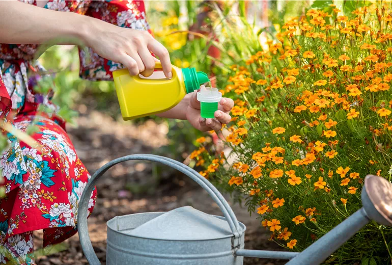 Dünger verwenden bei der Pflanzenpflege im Sommer